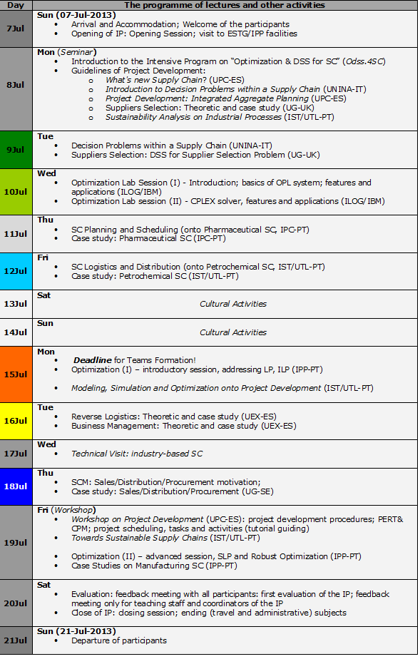Intensive Programme (Proc. N. 2012-1-PT1-ERA10-12527) |